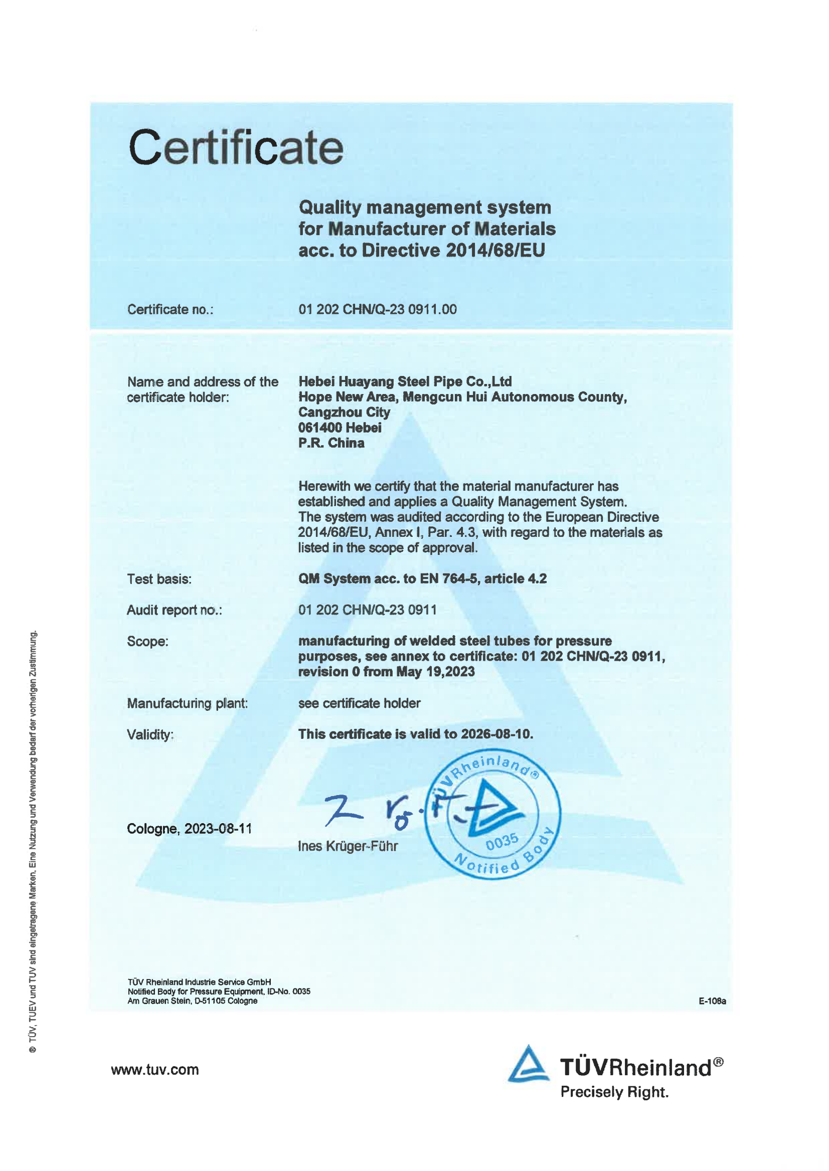 公司產品主要用于石油、天然氣、水、蒸汽、煤氣等高、中、低壓流體輸送管道及打樁、橋梁、建筑等結構用鋼管,并承擔了國內外標志性工程建設,華洋作為一個綜合型生產企業,下設河北銘高貿易有限公司,以及在天津石家莊、山東、四川、廣州等地設立有3家分公司和5個辦事處。產品銷往各個城市井出口東南亞、中東、歐美等八十多個地區,在國內外享有很高的聲譽。